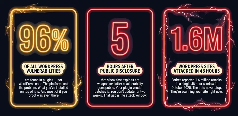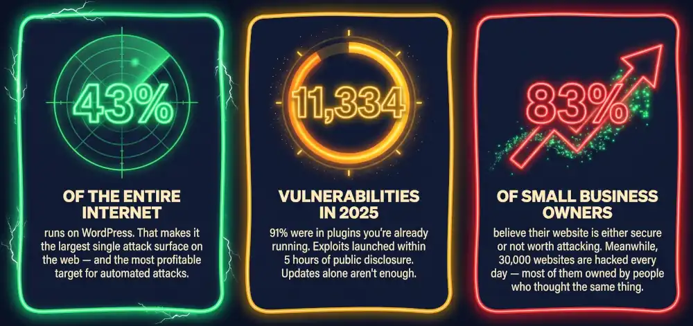In 2025, 11,334 vulnerabilities were discovered in the WordPress ecosystem. 91% of them were in plugins — not WordPress core. The platform isn’t the problem.